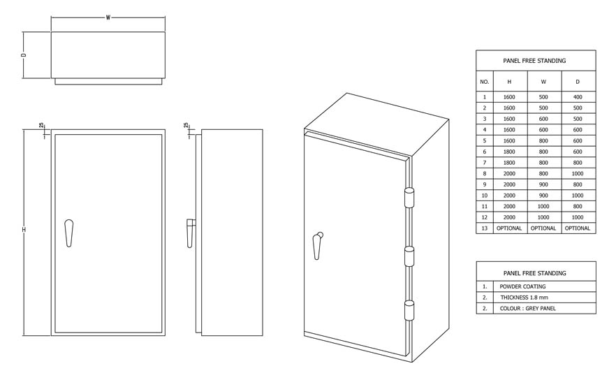 Panel Free Standing adalah panel yang diklasifikasikan sebagai panel distribusi (LVMDP dan SDP). Panel ini berukuran besar sehingga tidak di tanam di tembok melainkan berdiri sendiri dengan menggunakan dudukan panel. Panel ini menggunakan berbagai komponen listrik seperti ACB, MCCB, dan MCB.