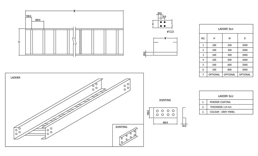 Cable ladder juga dikenal sebagai rak kabel atau cable tray. Cable ladder digunakan untuk menopang kabel listrik distribusi maupun komunikasi di sebuah jaringan system listrik/komunikasi. Cable ladder biasanya di gantung di atas untuk jalur kabel agar tidak menganggu. Cable Ladder ada berbagai ukuran dan terbuat dari bahan plat galvanis yang anti karat.